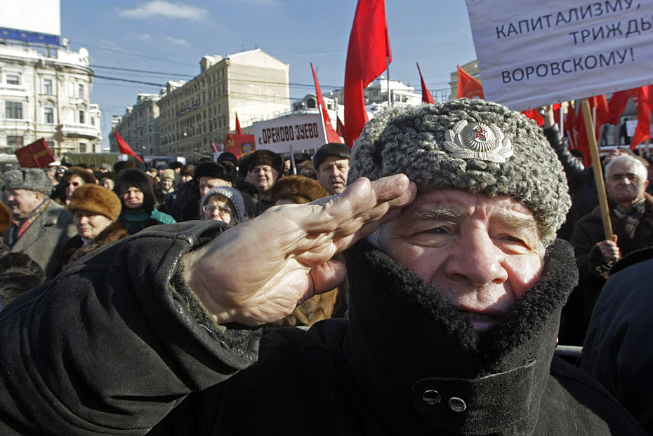 2月23日,俄羅斯莫斯科,示威者參加俄羅斯共產(chǎn)黨組織的集會,抗議軍隊改革。圖片來源:中國新聞網(wǎng)