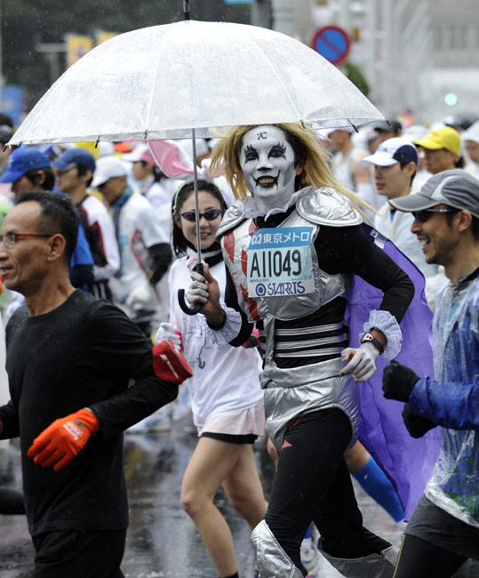 2月28日,日本東京馬拉松賽舉行,超過30000名愛好者參加了此次馬拉松賽。很多參賽者的怪異服裝成為了賽場上的一道風景。