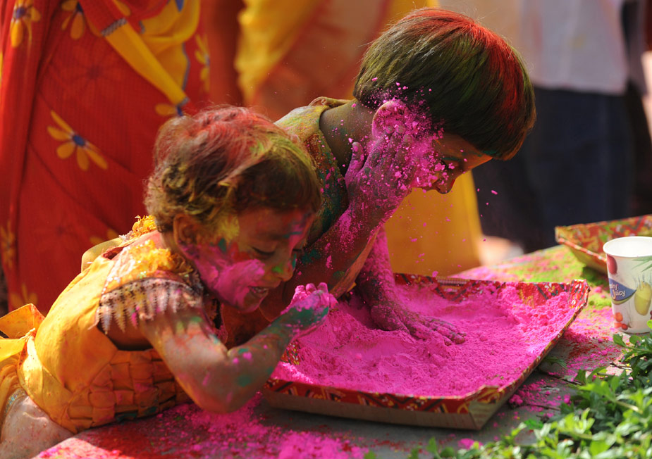 印度灑紅節(jié) 民眾互灑顏料送祝福