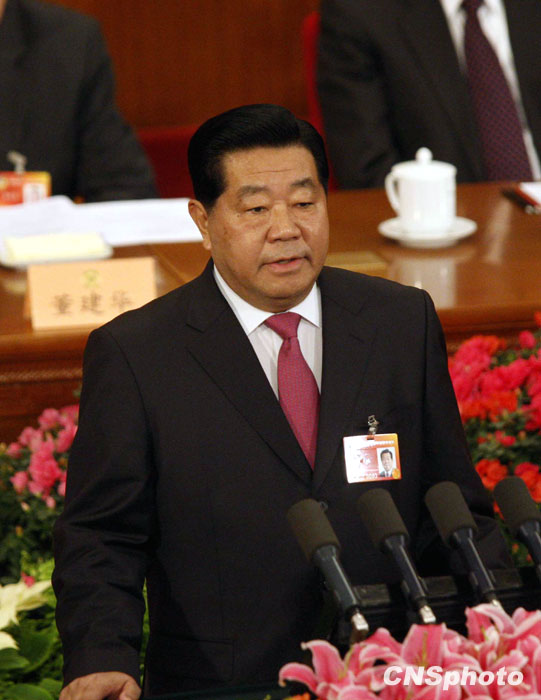 3月3日,全國政協(xié)十一屆三次會議在北京人民大會堂開幕,全國政協(xié)主席賈慶林作全國政協(xié)常委會工作報告。中新社發(fā) 張宇 攝