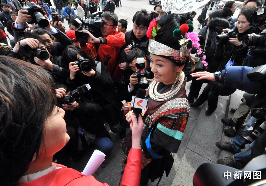貴州苗族女代表雷阿幼朵是亮點(diǎn)之一。中新社記者 賈國榮 攝
