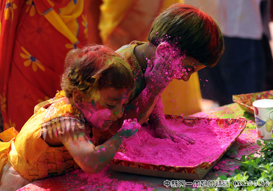 2月28日,印度舉行慶祝灑紅節(jié)活動(dòng),人們互撒顏料以示祝福。 灑紅節(jié)是印度最盛大的節(jié)日之一,在每年2月至3月間舉行。按照傳統(tǒng)習(xí)俗,人們會(huì)在自己的臉上和身上涂抹顏料,還向別人身上拋撒彩色顏料和粉末。圖片來源:中國(guó)新聞網(wǎng)>>點(diǎn)擊觀看詳細(xì)內(nèi)容