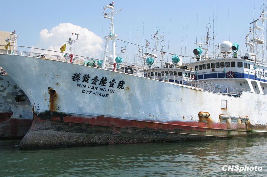 09年4月在西印度洋遭索馬里海盜挾持的臺(tái)灣遠(yuǎn)洋漁船“穩(wěn)發(fā)161號(hào)”,歷經(jīng)各方營(yíng)救,終于在遭挾持10個(gè)多月后,包括船長(zhǎng)顏勝男等共28人返回高雄港。圖片來源:中國(guó)新聞網(wǎng)