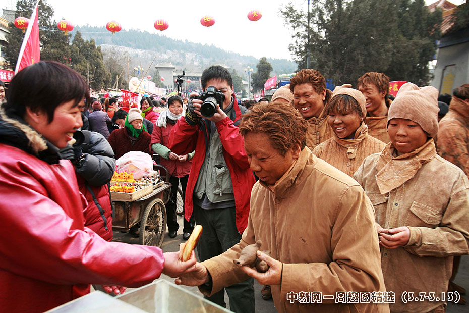 3月7日,一群“泥人”在河南?h廟會(huì)上自制泥玩具并將與現(xiàn)場(chǎng)商販交換商品。這次“大地上的人”藝術(shù)活動(dòng)是“王剛——老萬系列作品”的第五次行為藝術(shù)活動(dòng)。“老萬”代表“千千萬萬”。本次活動(dòng)的主題從關(guān)注農(nóng)民工擴(kuò)展到了關(guān)注人類的生存與發(fā)展。圖片來源:中國(guó)新聞網(wǎng)>>點(diǎn)擊觀看詳細(xì)內(nèi)容