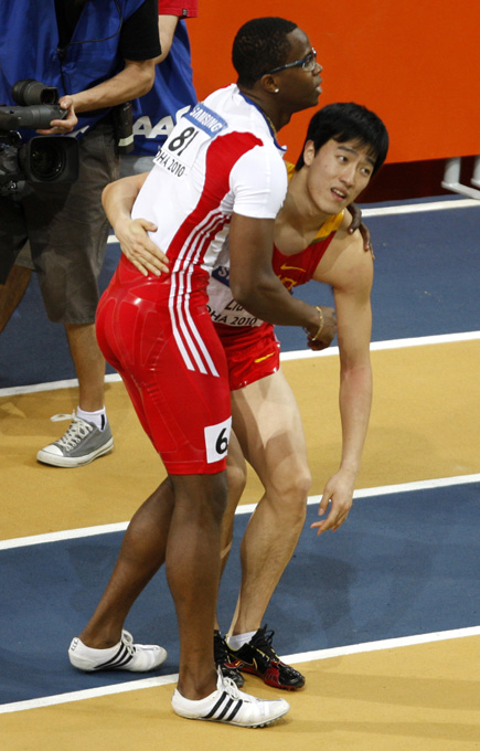 在14日晚間結(jié)束的多哈室內(nèi)田徑世錦賽60米欄決賽中,劉翔僅僅以7秒65的成績獲得第七名。古巴選手羅伯斯則以7秒34成績奪得冠軍并打破室內(nèi)世錦賽賽會紀(jì)錄。圖片來源:中國新聞網(wǎng)