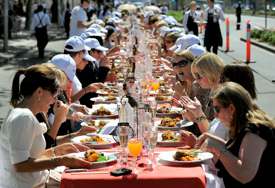 近日,澳大利亞墨爾本,人們?cè)谔?hào)稱(chēng)“世界上最長(zhǎng)的午餐”活動(dòng)中享受美味佳肴。圖片來(lái)源:中國(guó)新聞網(wǎng)