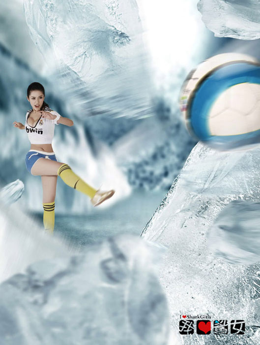 靚模潘霜霜最近拍攝了一組身穿皇馬足球隊(duì)8號(hào)隊(duì)服的性感寫真,其中包括在場(chǎng)上模仿C羅踩單車過人,最后被踢傷和踢碎玻璃的表情。潘霜霜現(xiàn)已簽約保利博納,正式進(jìn)軍電影圈。圖片來源:中國(guó)新聞網(wǎng)