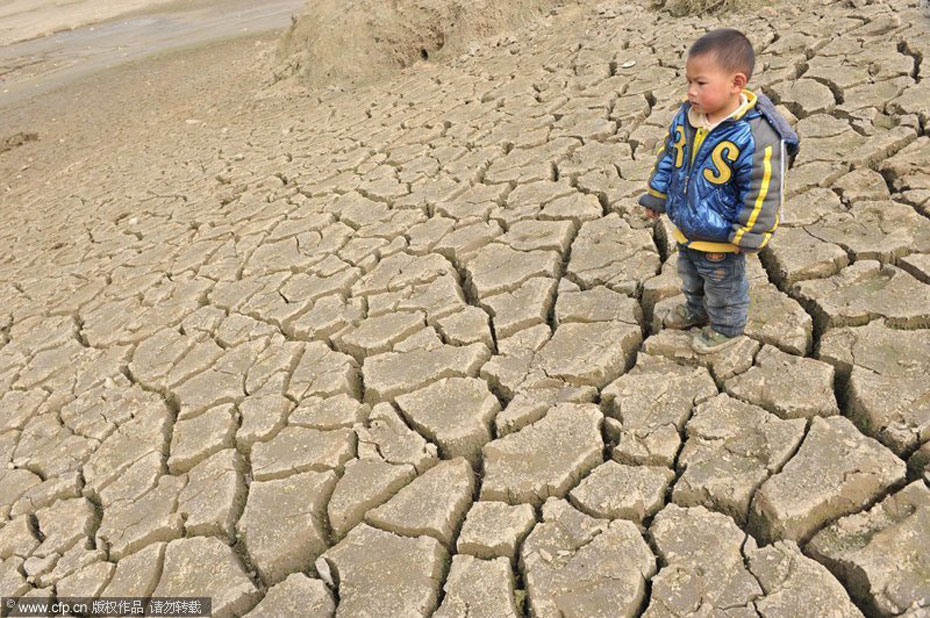 中國西南地區(qū)抗旱形勢十分嚴峻,云南、貴州、廣西、重慶、四川五省(區(qū)、市)局部出現(xiàn)嚴重干旱。截至3月16日,有2000多萬人因旱飲水困難。圖片來源:中國新聞網