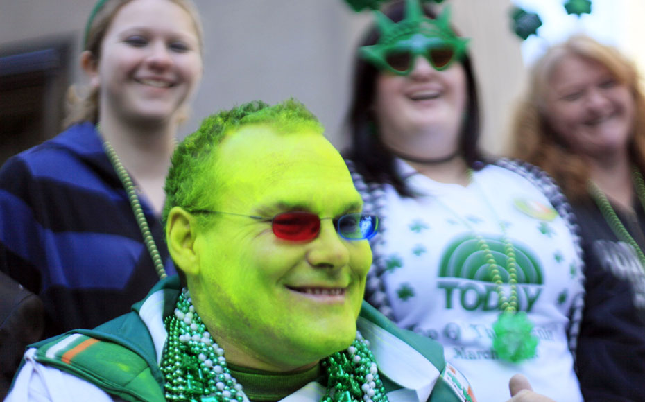 圖為美國愛爾蘭民眾歡慶圣帕特里克節(jié)。