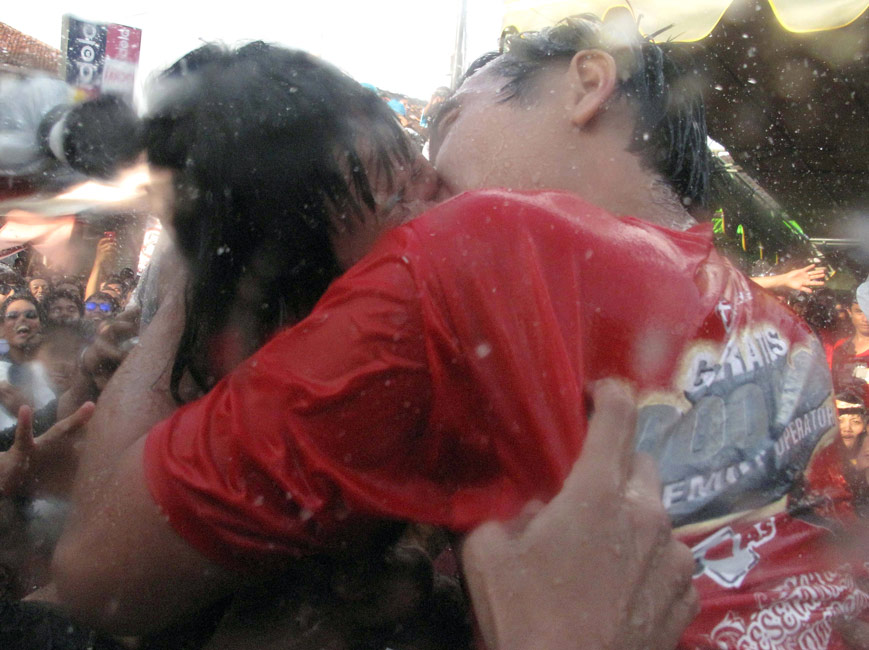 當(dāng)?shù)貢r(shí)間3月17日,印尼旅游勝地巴厘島舉行了傳統(tǒng)的“接吻節(jié)”。圖片來源:中國新聞網(wǎng)