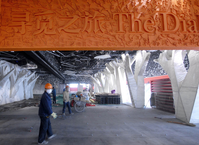 3月25日,中國(guó)上海世博會(huì)“中國(guó)館”布展近尾聲。