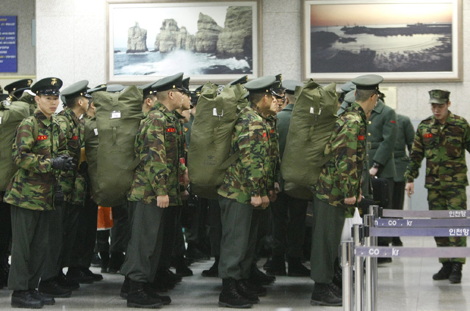 首爾當(dāng)?shù)貢r(shí)間26日晚9點(diǎn)45分許,在韓國西部海域執(zhí)行警戒任務(wù)的天安艦(1200噸級)因不明原因事故,船底被炸開洞,船尾開始下沉。天安艦上共有104人,韓國巡邏艇和直升飛機(jī)迅速展開救援行動,事發(fā)5小時(shí)后,官員稱已救出58人,但因?yàn)閺?qiáng)風(fēng)和夜幕,救援行動進(jìn)展緩慢,其它人員仍下落不明。圖為韓國海軍海上救援隊(duì)正在整裝準(zhǔn)備出發(fā)。