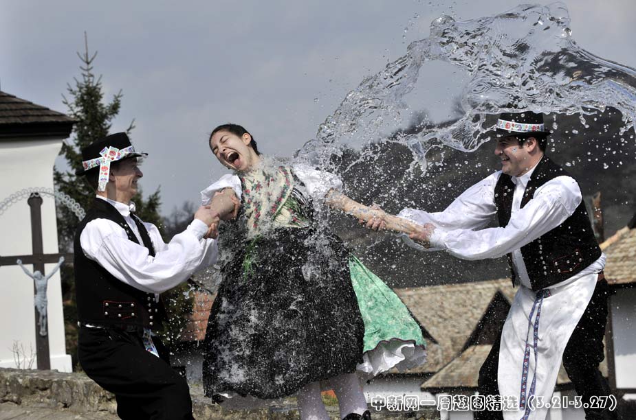 3月26日,在匈牙利首都布達(dá)佩斯以東被譽為世界文化遺產(chǎn)的霍洛克村,當(dāng)?shù)鼐用褚韵蚬媚锷砩蠞娝膫鹘y(tǒng)儀式慶祝復(fù)活節(jié)。圖片來源:中國新聞網(wǎng)>>點擊觀看詳細(xì)內(nèi)容