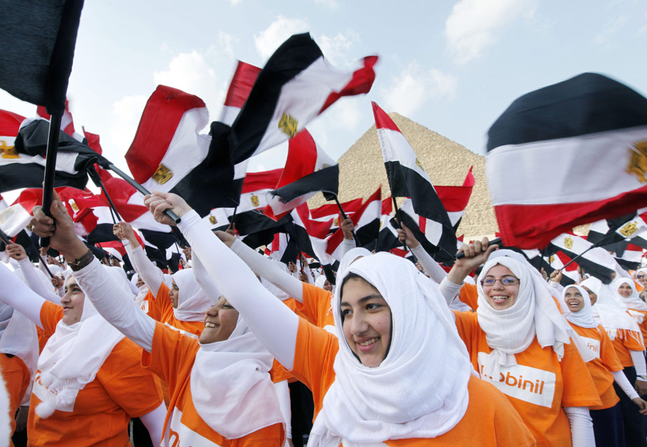 3月26日,4550名埃及兒童在首都開羅市郊的胡夫金字塔前揮舞埃及國(guó)旗,創(chuàng)造了在同一地點(diǎn)集體揮舞國(guó)旗的吉尼斯世界紀(jì)錄。