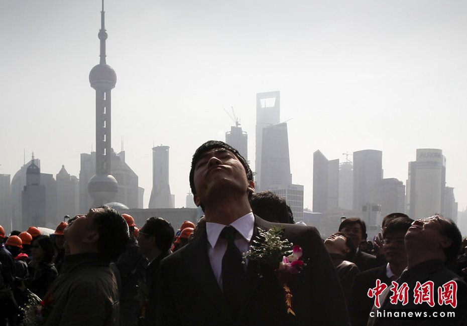 體育界代表跨劉翔仰望修葺一新的新外灘。當日上,外灘綜合改造工程竣工典禮在外灘濱水平臺舉行。參與外灘綜合改造的技術施工人員代表、外來務工人員代表,支持工程建設的動遷居民代表和市民代表為工程竣工剪彩。 徐曉林CFP