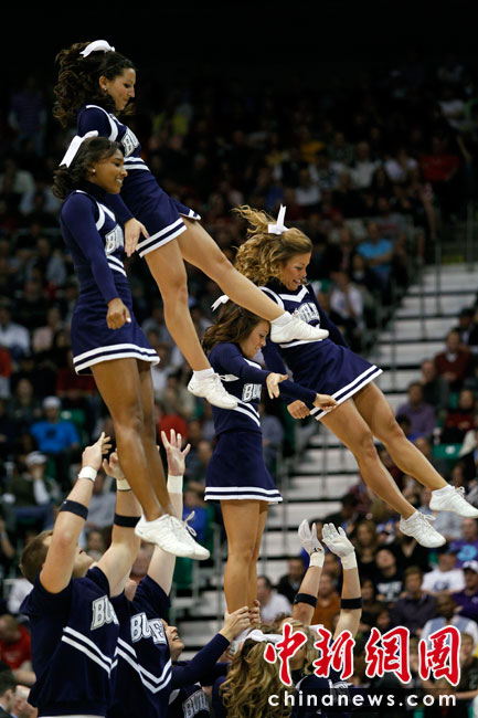 啦啦隊(duì)的歷史可追溯到原始部落時(shí)期,戰(zhàn)士們狩獵凱旋歸來時(shí),人們給予歡呼及鼓勵(lì)的動作。最初的拉拉隊(duì)要追溯到19世紀(jì)80年代的美國大學(xué)校園,當(dāng)時(shí)的形式是在大學(xué)里的橄欖球賽上,一位領(lǐng)隊(duì)站在一大群人前面領(lǐng)導(dǎo)他們?yōu)樽约旱那蜿?duì)吶喊助威。圖片來源:中國新聞網(wǎng)