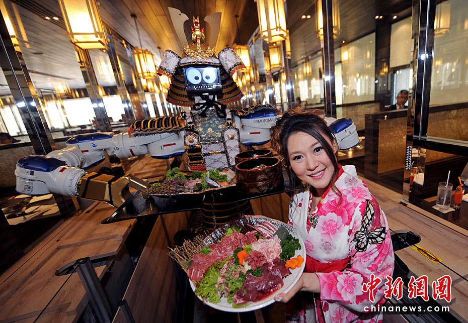 這家日本餐館是泰國首家擁有機(jī)器人服務(wù)員的餐館,顧客可以通過電子觸摸屏進(jìn)行點(diǎn)菜,機(jī)器人則會帶來相應(yīng)的服務(wù)。機(jī)器人服務(wù)員能有節(jié)奏地跳舞,還可以自動到餐桌為客人收走空盤子。