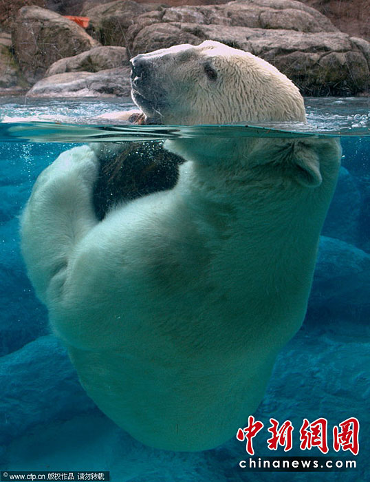 美國(guó)Asheboro北卡羅來(lái)納動(dòng)物園一頭名叫威利的北極熊可是個(gè)“活寶”。任何一個(gè)可用的東西都能成為它在鏡頭前“耍寶”的玩具。圖片來(lái)源:CFP