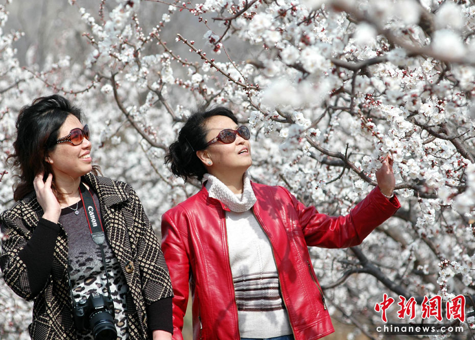 4月3日,山東鄒平縣萬畝杏園內(nèi)鮮花怒放,爭奇斗艷,正在進(jìn)行的杏花節(jié)觀花活動(dòng)吸引了當(dāng)?shù)丶爸苓叧汕先f的攝影愛好者和游客紛紛前來拍照游玩,賞花踏青。中新社發(fā) 董乃德 攝