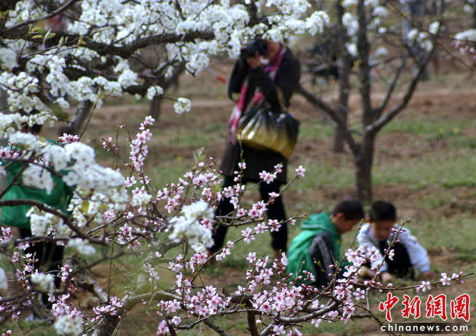 5日,清明節(jié),河南省濟源市許多市民到郊外踏青賞花。中新社發(fā) 平白 攝