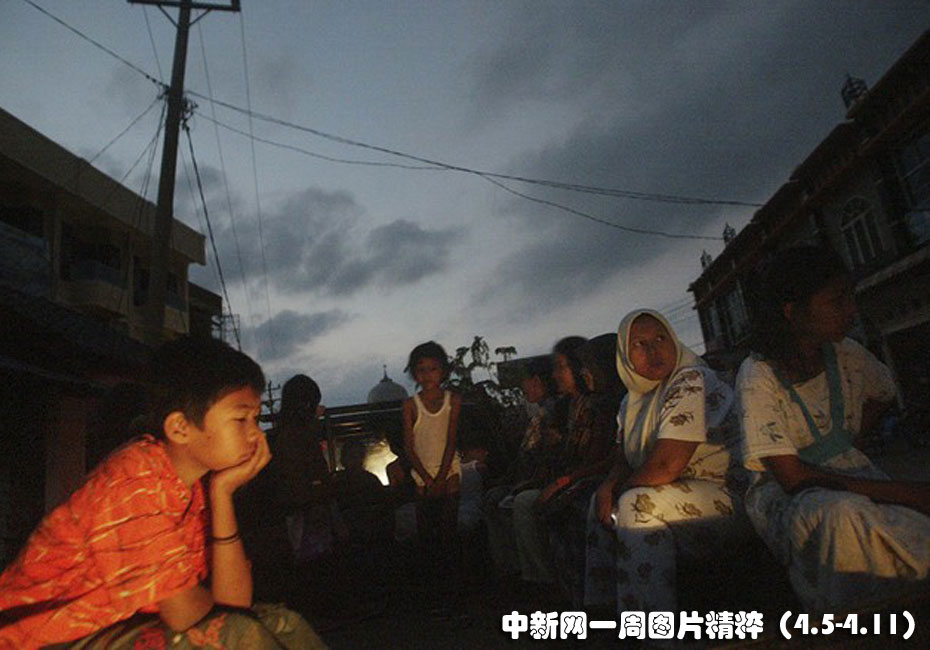 4月7日周三,印尼蘇門答臘島發(fā)生里氏7.7級地震,地震引發(fā)輕微海嘯及普遍恐慌,該地區(qū)曾在2004年的海嘯中遭受重創(chuàng),逾20萬人喪生。圖為地震發(fā)生后,當(dāng)?shù)鼐用翊糇趹敉獾目ㄜ嚿稀?/p>