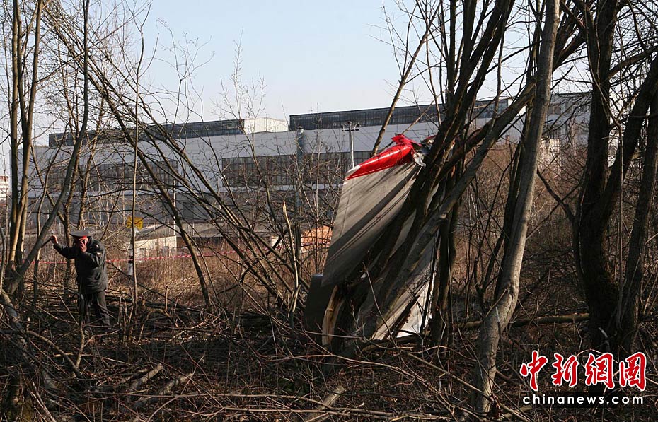 4月11日,波蘭總統(tǒng)卡欽斯基專機在俄羅斯斯摩棱斯克軍用機場墜毀地點附近的道路開通,但是警戒線核心區(qū)仍然關(guān)閉。俄波調(diào)查人員正在現(xiàn)場工作。圖片來源:中國新聞網(wǎng)