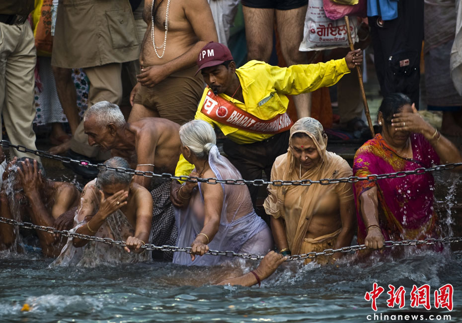 4月13日,印度教傳統(tǒng)節(jié)日“大壺節(jié)”步入尾聲,前來參加盛典的上萬苦行僧赤裸身體涌入恒河,祈求洗清身上的“罪惡”。圖片來源:中國新聞網(wǎng)