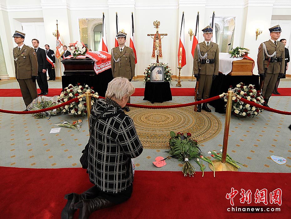當(dāng)?shù)貢r(shí)間4月13日14時(shí),波蘭總統(tǒng)夫婦的遺體被安放在總統(tǒng)府最大的圓柱廳供民眾瞻仰和悼念?偨y(tǒng)卡欽斯基及其夫人的葬禮將于18日舉行。圖片來(lái)源:中國(guó)新聞網(wǎng)