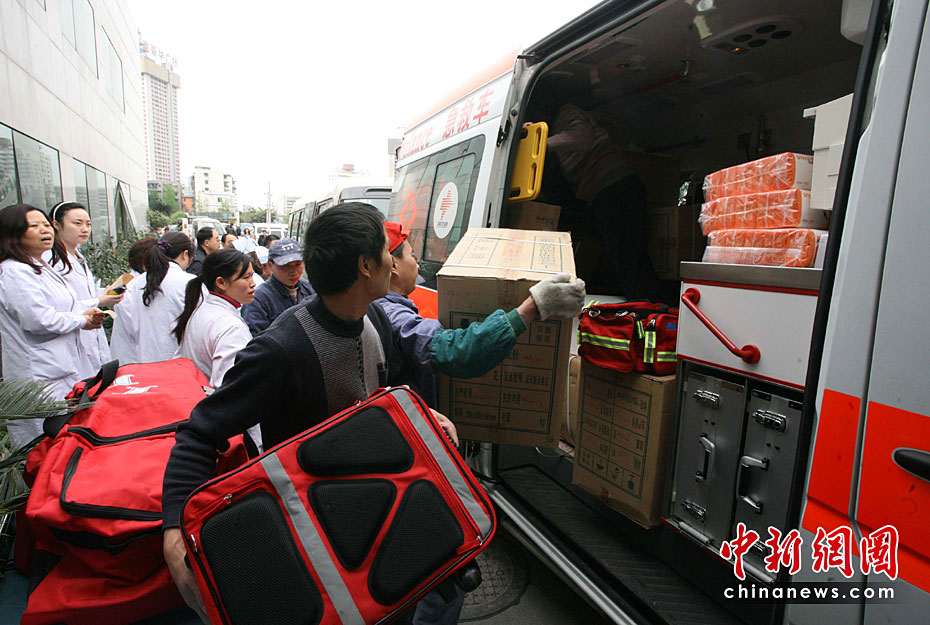 圖為4月14日下午,由四川省醫(yī)院、華西醫(yī)院23人組成的醫(yī)療救援隊(duì)緊急趕赴青海省玉樹(shù)縣地震災(zāi)區(qū)參與醫(yī)療救援。中新社發(fā) 劉忠俊 攝