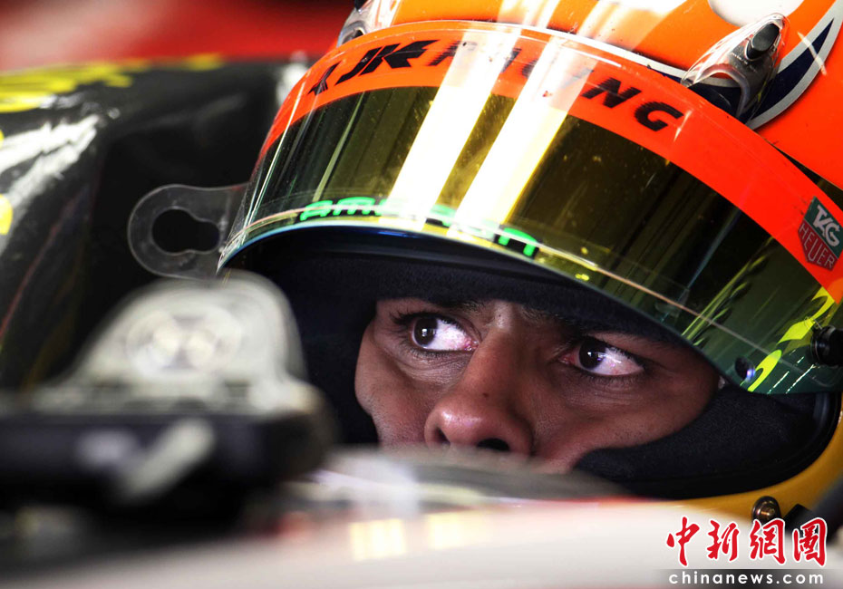 4月16日,2010國際汽聯(lián)F1世界錦標(biāo)賽上海站在上海國際賽車場開始車手第一、第二次練習(xí)賽。圖為代表印度車隊(duì)出戰(zhàn)的印度車手查鐸。中新社記者 任晨鳴 攝