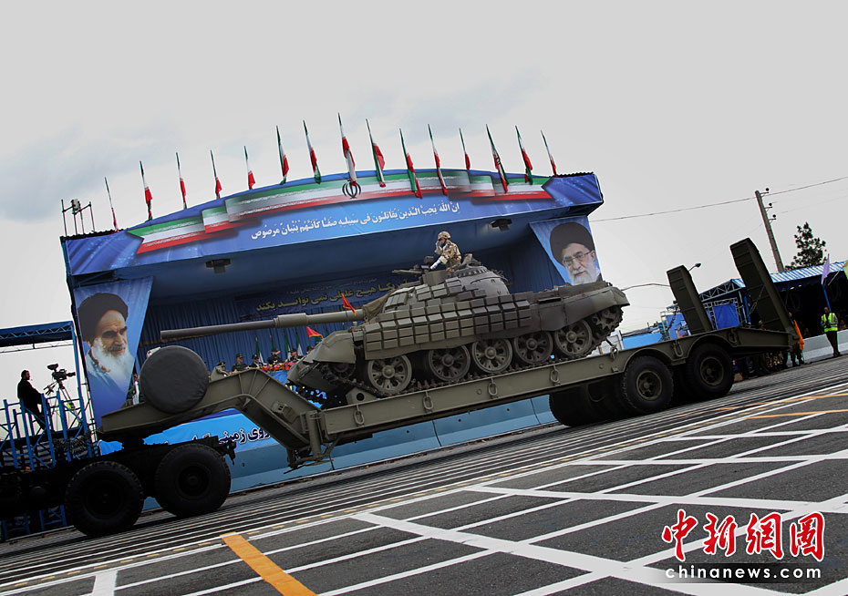4月18日,伊朗德黑蘭舉行伊朗建軍節(jié)閱兵式。伊朗在閱兵式上展出了“力量”、“流星”和“泥石”等地對地導(dǎo)彈。圖片來源:中國新聞網(wǎng)