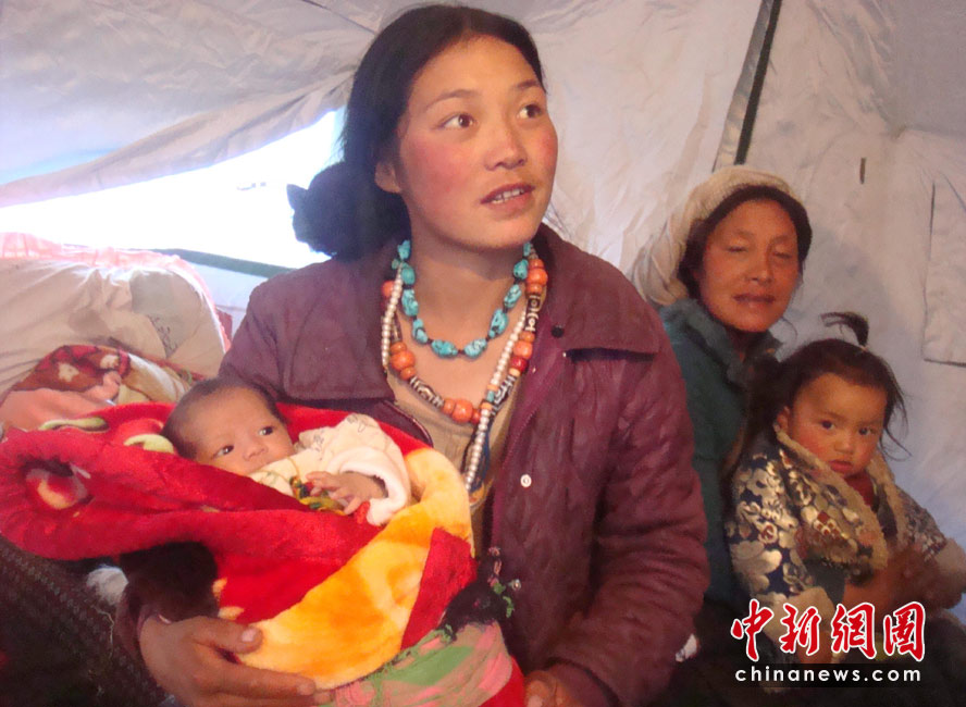 襁褓中這位還沒有取名的藏族嬰兒,堪稱玉樹地震災(zāi)區(qū)最令人愛憐的藏族小嬰兒——出生第十五天就遭遇到青海玉樹強(qiáng)烈地震,媽媽和多位家人不幸罹難。如今小嬰兒由幸存的姑媽呵護(hù)著,棲身在第二炮兵總醫(yī)院醫(yī)療隊(duì)的救災(zāi)帳篷里。中新社發(fā) 賈國(guó)榮 攝
