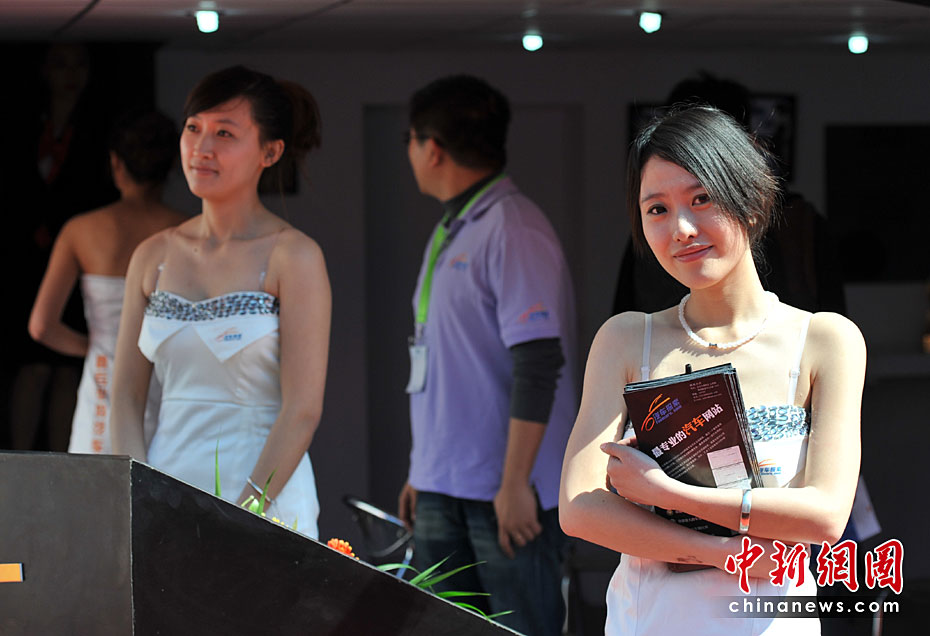 “第十一屆北京國(guó)際車展”場(chǎng)內(nèi)車模爭(zhēng)奇斗艷,場(chǎng)外美女不甘示弱。中新網(wǎng)記者 金碩 攝