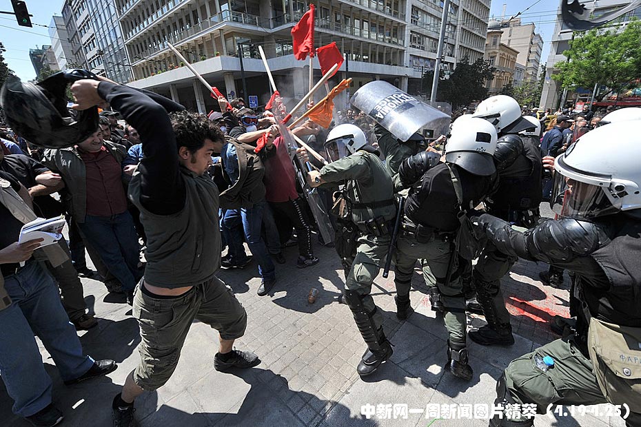 周四(22日),希臘示威者與防暴警察在希臘首都雅典發(fā)生激烈沖突。