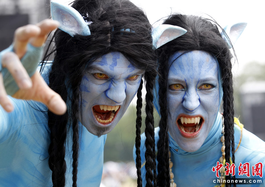 2010年4月25日,在美國(guó)首都華盛頓,兩名扮成電影《阿凡達(dá)》里納美人模樣的演員參加“氣候集會(huì)”演唱會(huì)。當(dāng)天,華盛頓舉行演唱會(huì),紀(jì)念“世界地球日”。4月22日是第41個(gè)“世界地球日”。