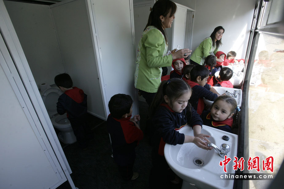 4月26日,今年2月遭受8.8級強烈地震的智利康塞普西翁市,兒童們在“巴士學(xué)!崩锷险n。