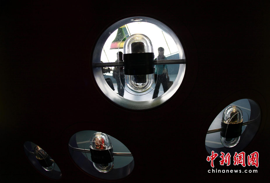 4月27日,人們經(jīng)過(guò)上海世博園德國(guó)館內(nèi)的展品墻。中新社發(fā) 盛佳鵬 攝