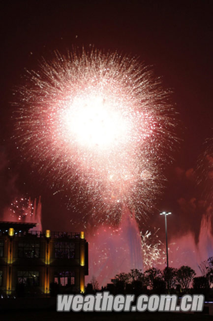 2010年4月27日,上海世博會開幕式彩排順利進(jìn)行。圖為酷似英國館的煙花。卞赟 攝