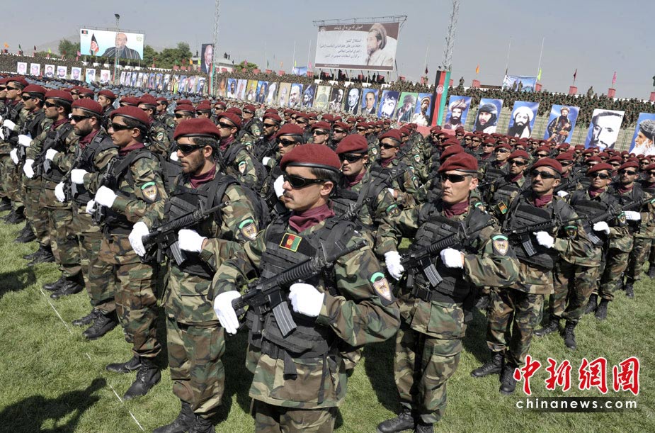 4月28日,阿富汗喀布爾,抗擊入侵勝利18周年的閱兵慶典在市中心體育場(chǎng)內(nèi)舉行。