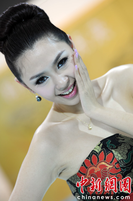“第十一屆北京國(guó)際車(chē)展”是名車(chē)新品搶先亮相的舞臺(tái),也成了車(chē)模們爭(zhēng)奇斗艷的場(chǎng)所,參觀者在車(chē)展中可以享受兩道視覺(jué)大餐。中新網(wǎng)記者 金碩 攝
