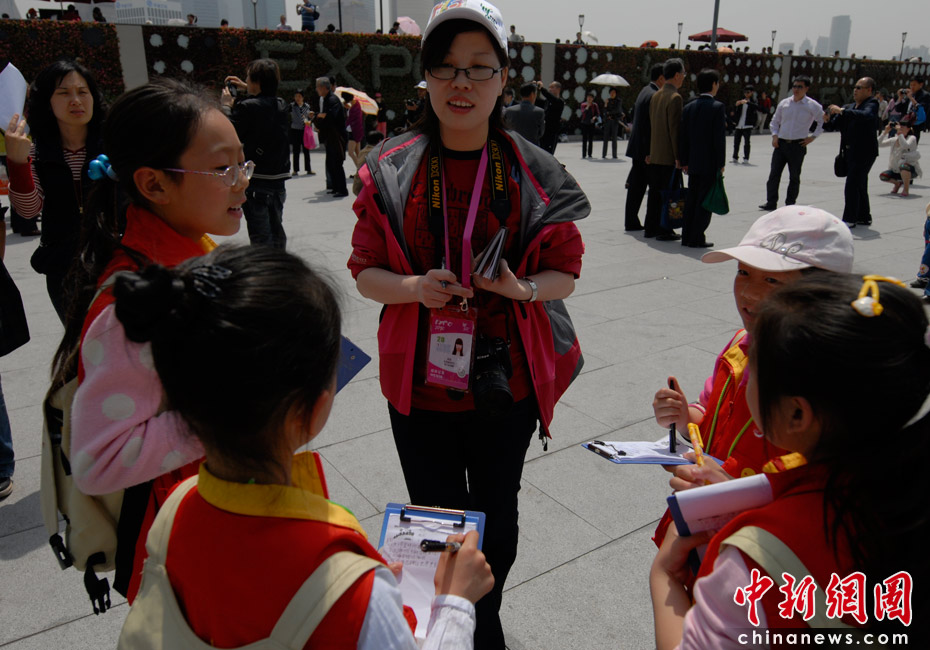 30日上午,記者在上海外灘采訪時(shí)遇到小主人報(bào)新聞學(xué)校的“小記者”們?cè)诓稍L,成為他們今天的第一個(gè)采訪對(duì)象!靶∮浾摺眰冏铌P(guān)心的問題是關(guān)于世博會(huì),“如何讓世界變得更美好”。她們都表示非常想去看世博會(huì),最想看的是中國館,但是要留到最后看,“因?yàn)槠渌^都會(huì)拆掉,中國館會(huì)保留下來”!靶∮浾摺眰冋f,自己要從身邊小事做起,做有文明有素質(zhì)的人,并表示希望自己將來成為真正的“大記者”,更好地報(bào)道上海。吳歆/文 王紅綱/圖