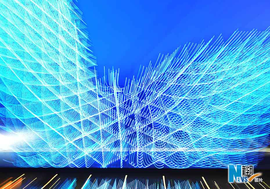 夜色下的世博園,迷離而夢(mèng)幻。圖為世博軸陽光谷。圖片來源:新華網(wǎng) 郭毅攝