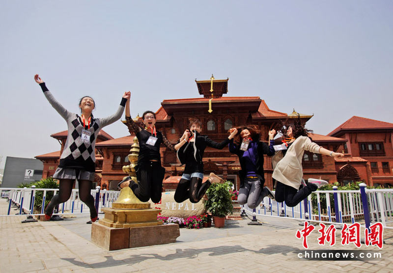 4月30日晚,舉世矚目的上海世博會開幕式將在黃浦江畔世博園區(qū)舉行。圖為4月30日,尼泊爾館前,幾名世博工作人員跳起來合影,慶祝即將到來的動人時刻。