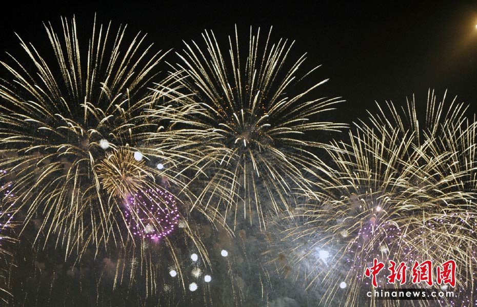4月30日晚,2010年上海世博會開幕式在上海世博園世博文化中心舉行。21時28分,世博會焰火燈光表演開始。黃浦江兩岸綿延3.28公里同時奏響火樹銀花不夜天的華彩世博樂章。中新網(wǎng)記者 王紅綱 攝