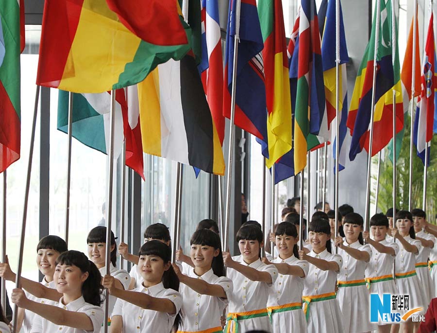5月1日,中國2010年上海世博會(huì)開園儀式在上海世博園世博中心舉行。這是參展方旗幟方隊(duì)入場。 裴鑫 攝(新華網(wǎng))