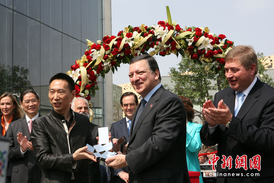 5月1日,歐洲委員會主席巴羅佐(中)在上海世博園區(qū)出席歐盟館開館儀式。當(dāng)日,上海世博會正式開園。中新社發(fā) 湯彥俊 攝