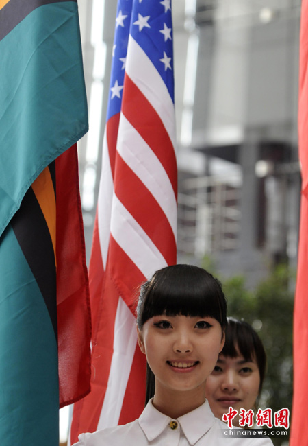 5月1日,2010年上海世博會正式開園,英姿颯爽的女子旗手們參加清晨的儀式。中新社記者 賈國榮攝