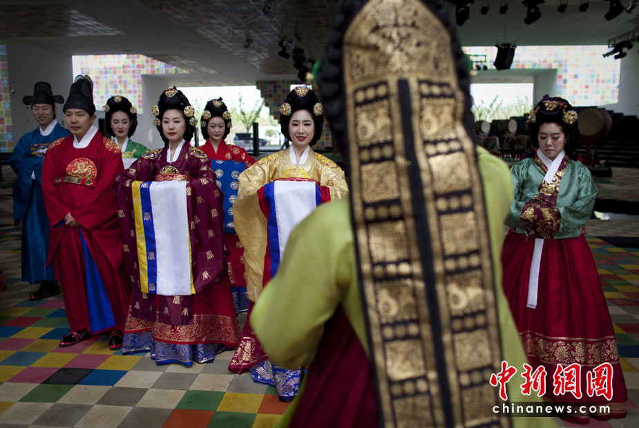 5月1日,上海世博會(huì)正式開園迎客,首批游客入園參觀。圖為在韓國(guó)館內(nèi)接待人員靜候前來參觀的游客。