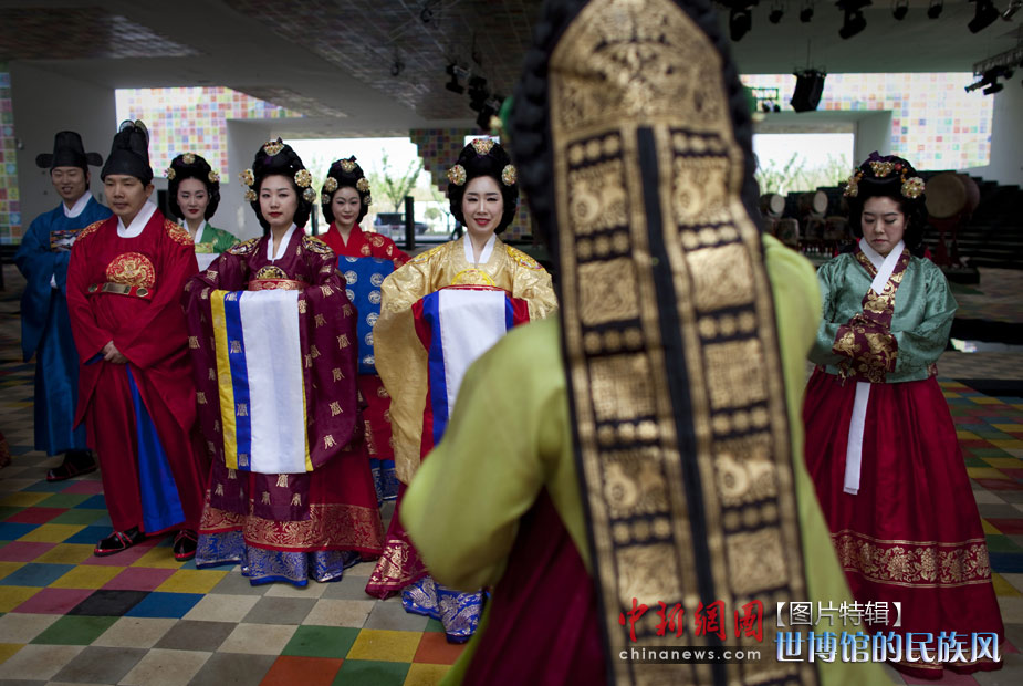 5月1日,上海世博會(huì)正式開(kāi)園。圖為在韓國(guó)館內(nèi)接待人員身著民族特色服飾迎接參觀者。