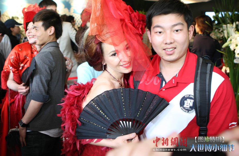 5月1日,上海世博會正式開園,當(dāng)日有20萬人次的游客參觀了世博園。世博首日,許許多多的小細(xì)節(jié)都帶給人一種全新的體驗。圖為法國美女與中國小伙“親密接觸”,盡顯法蘭西浪漫風(fēng)情。中新社發(fā) 湯彥俊 攝